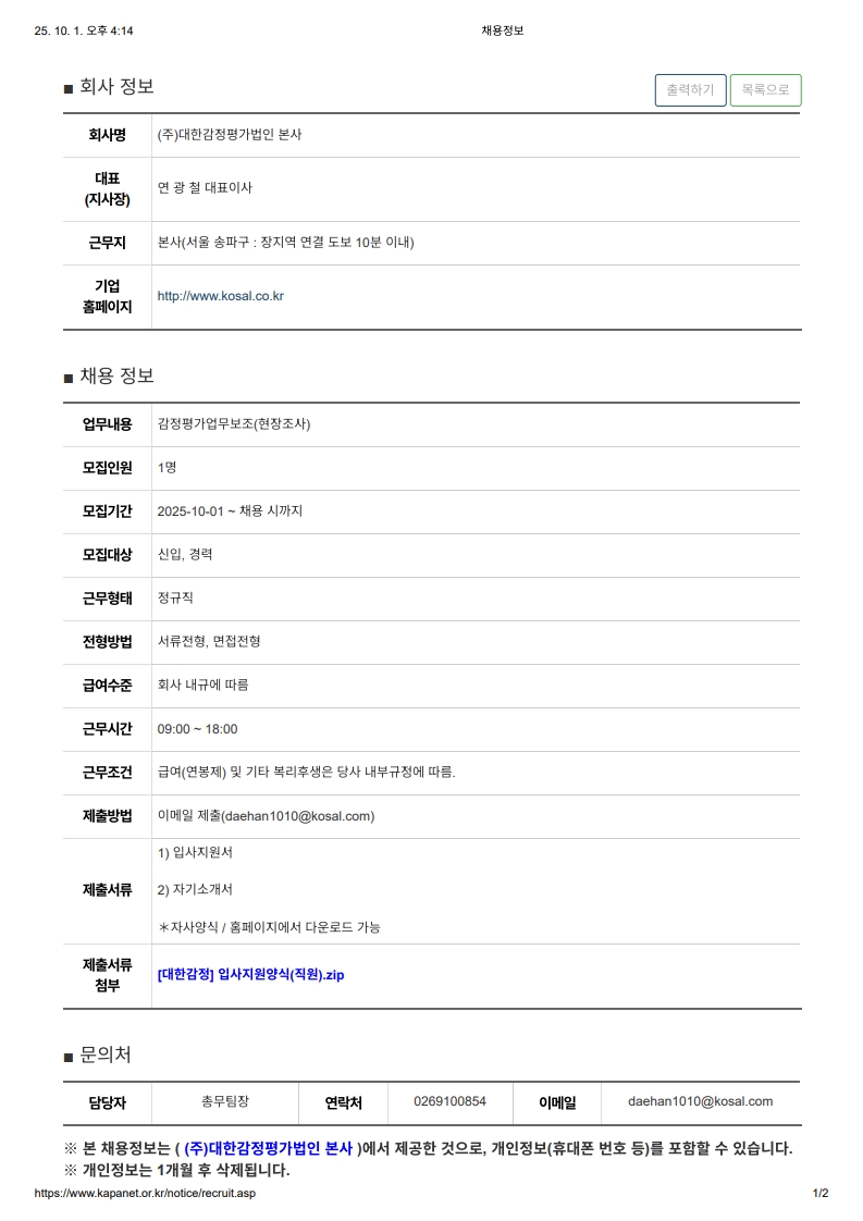 (주)대한감정평가법인 본사 평가사 모집
