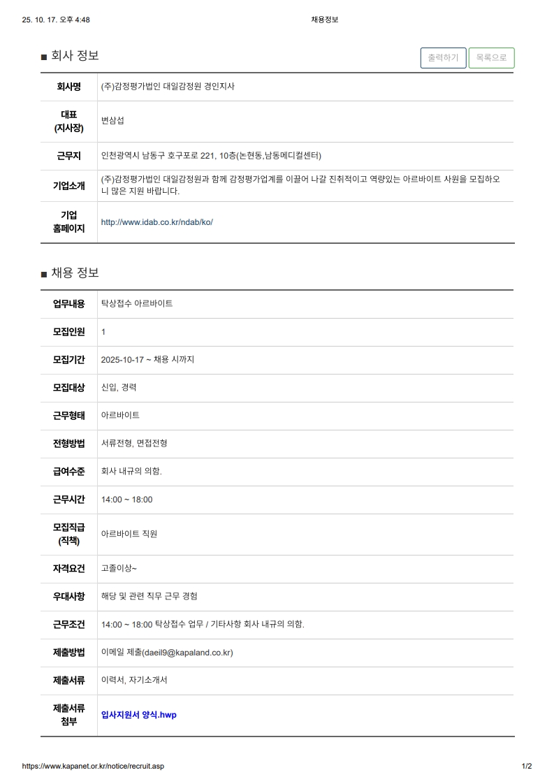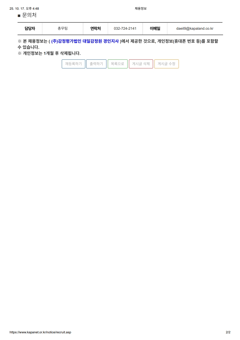 (주)감정평가법인 대일감정원 경인지사 평가사 모집