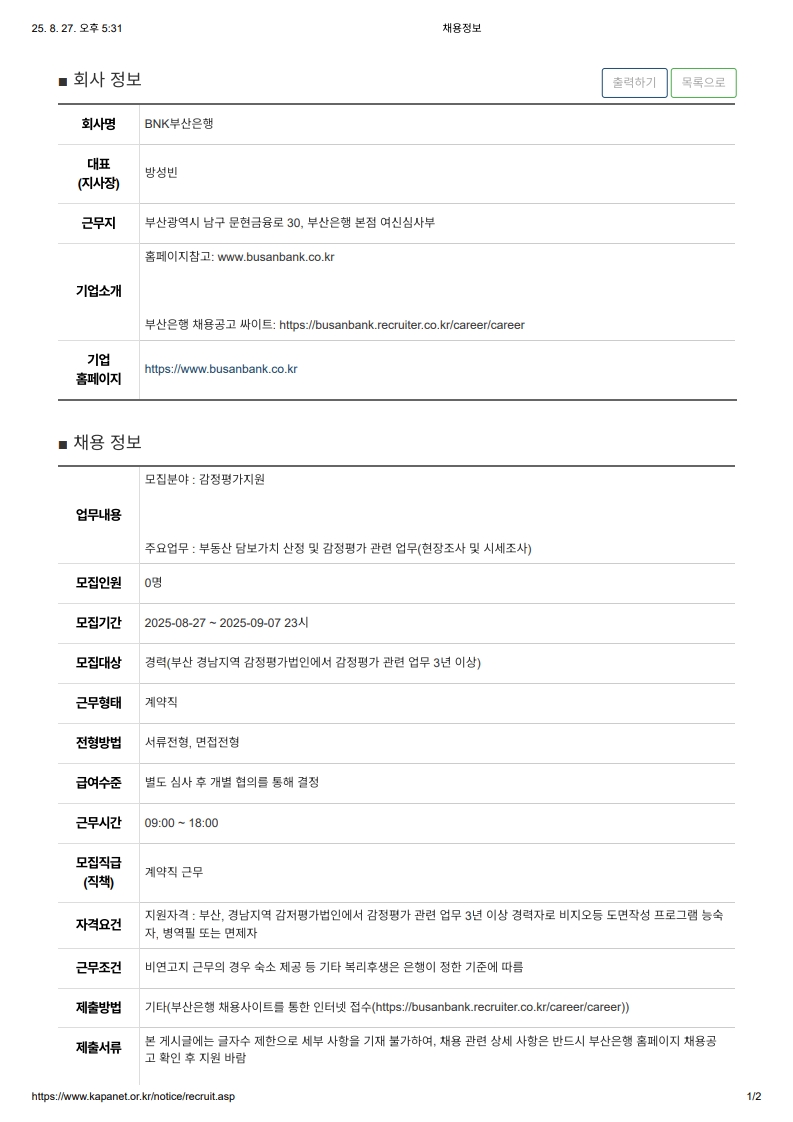 BNK부산은행 평가사 모집