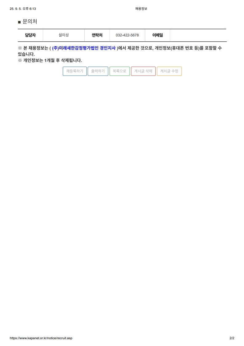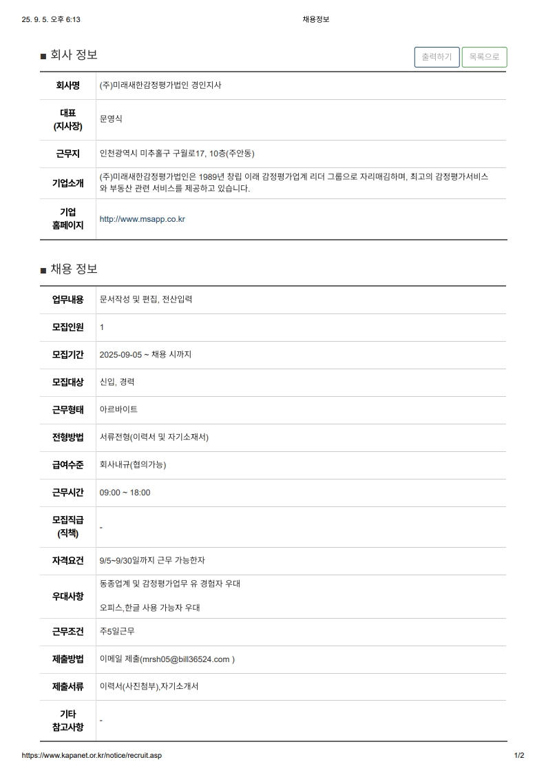 (주)미래새한감정평가법인 경인지사 평가사 모집