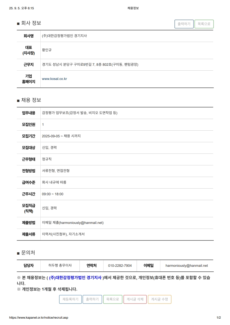 (주)대한감정평가법인 경기지사 평가사 모집