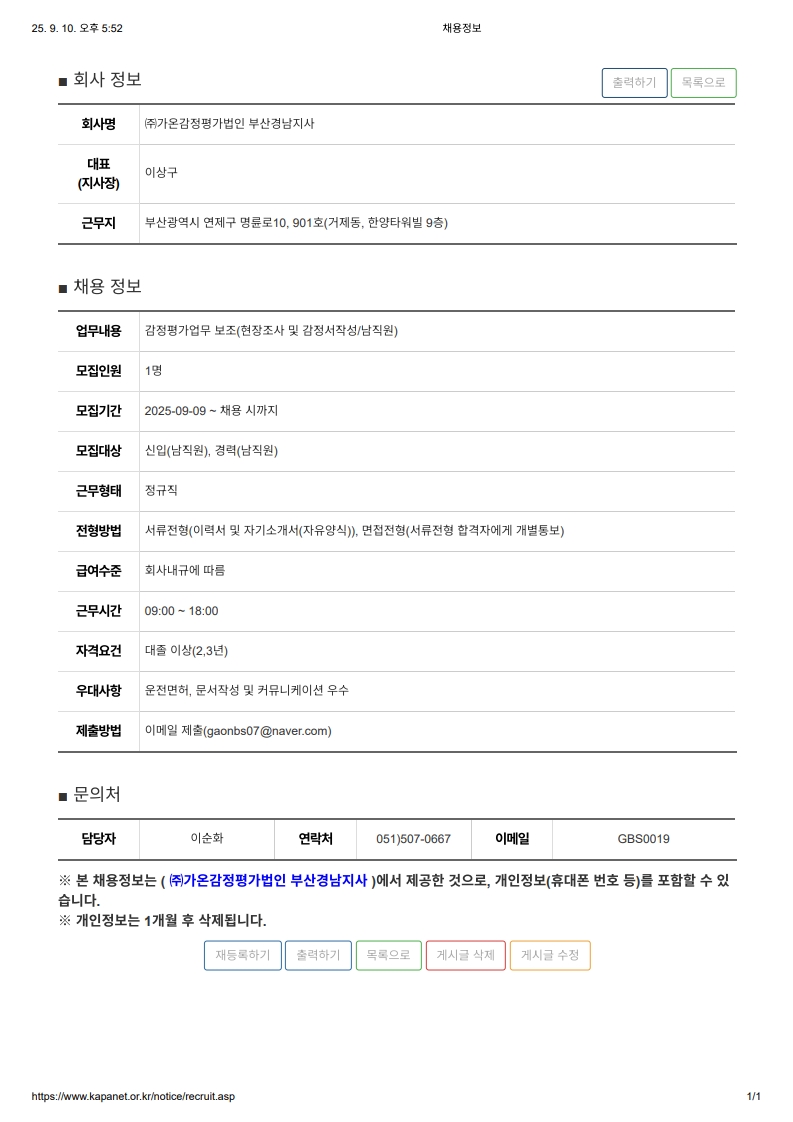 ㈜가온감정평가법인 부산경남지사 평가사 모집