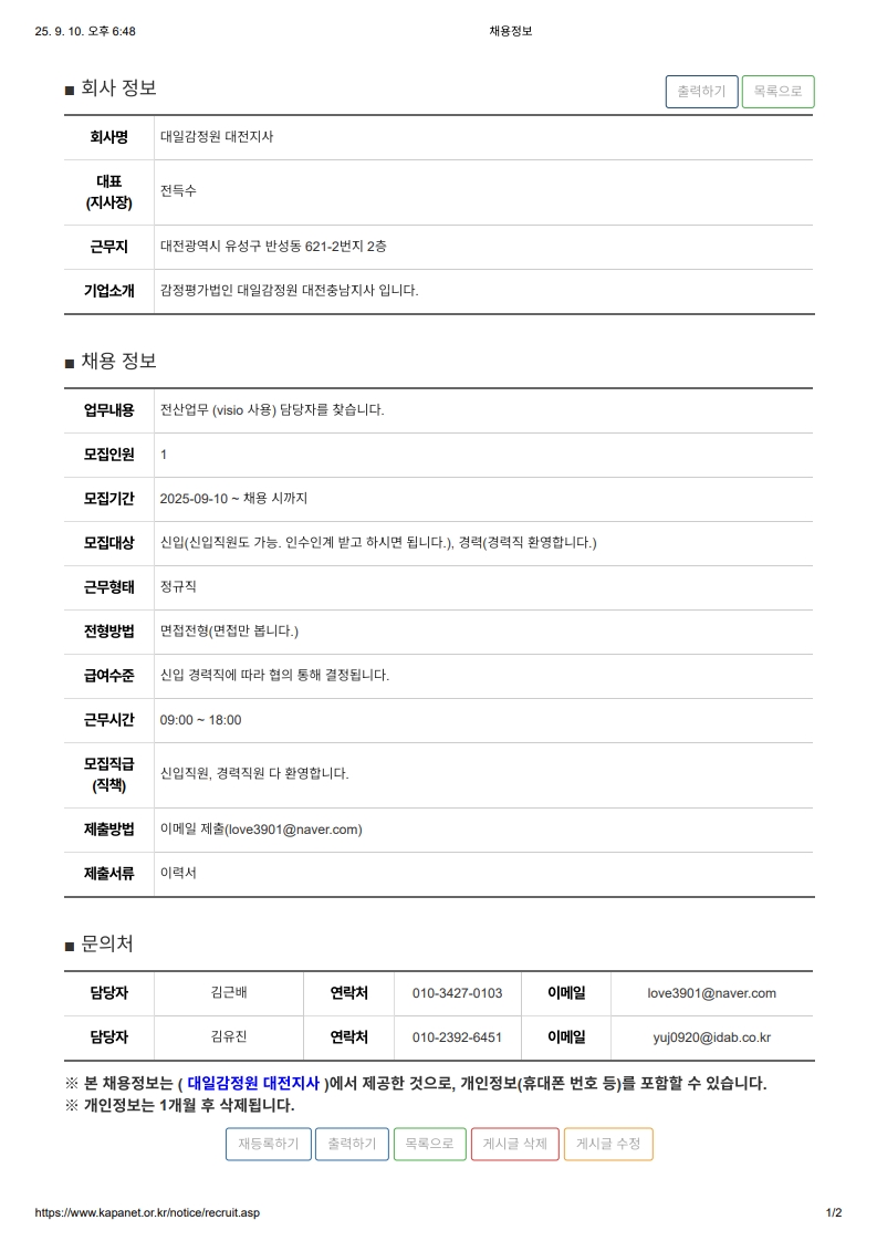 대일감정원 대전지사 평가사 모집
