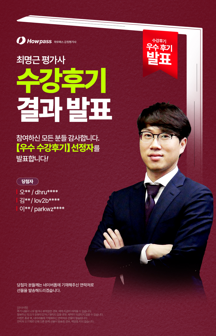 [이벤트 결과] 최명근 평가사 평가이론 수강후기 이벤트 우수 후기 결과 발표
