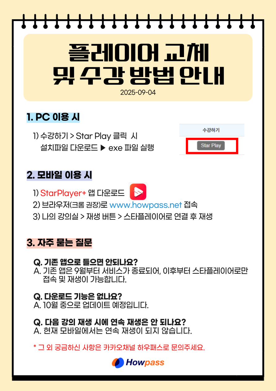 [공지] 스타플레이어 이용 안내 2. 수강 방법 및 FAQ
