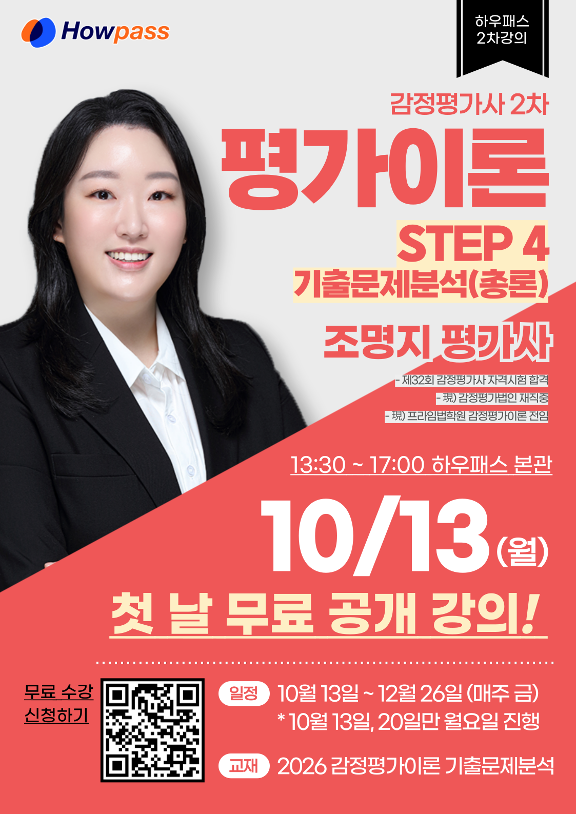 [실강 첫날 무료] 조명지 평가사 감정평가이론 기출(총론) 개강 안내