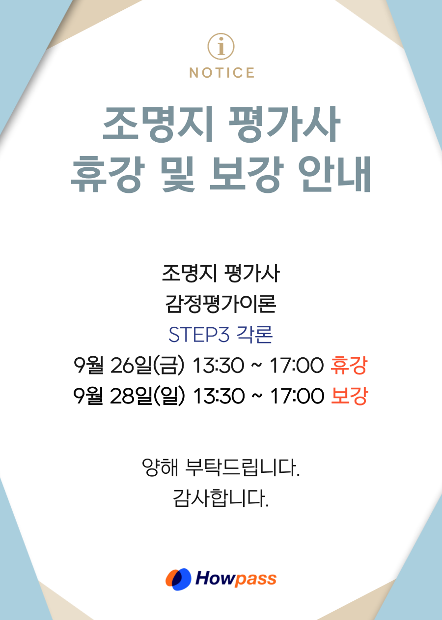 [공지] 조명지 평가사 STEP3 휴강 및 보강 안내