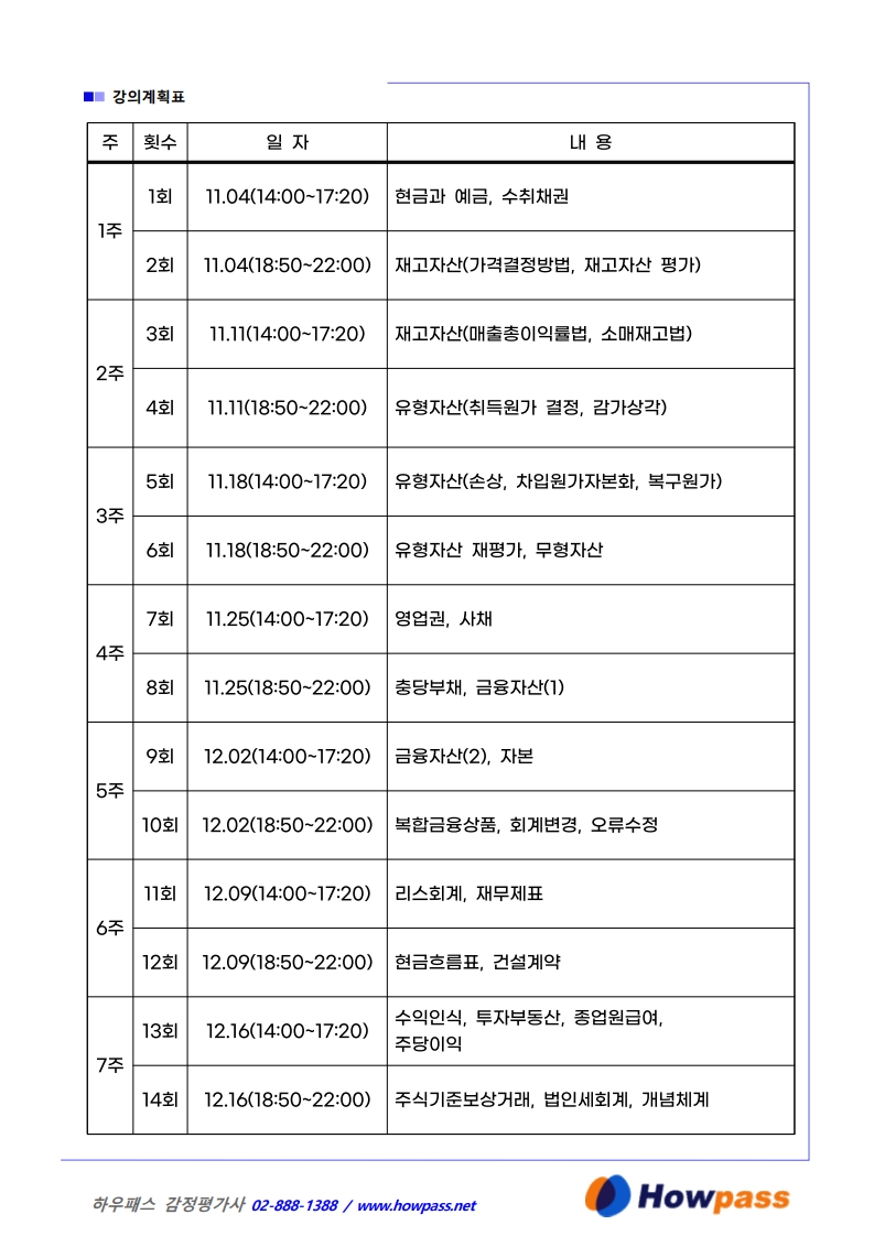 강의목차 시간 자료 샘플