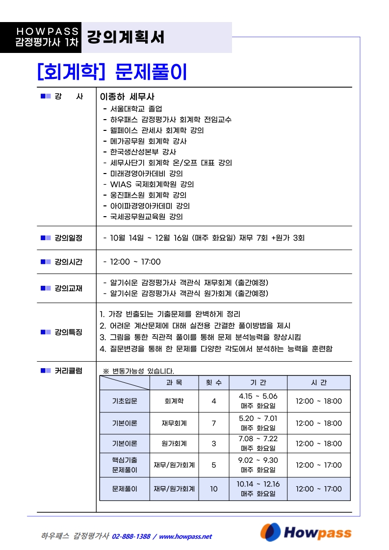 이종하 26년 감평1차 회계학 문제풀이 [동강, 25년 10월]