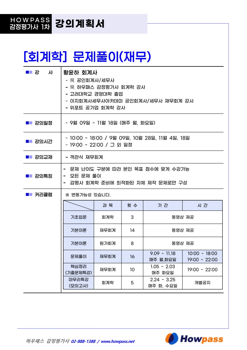 황윤하 26년 감평1차 재무회계 문제풀이 [실강, 25년 9월]