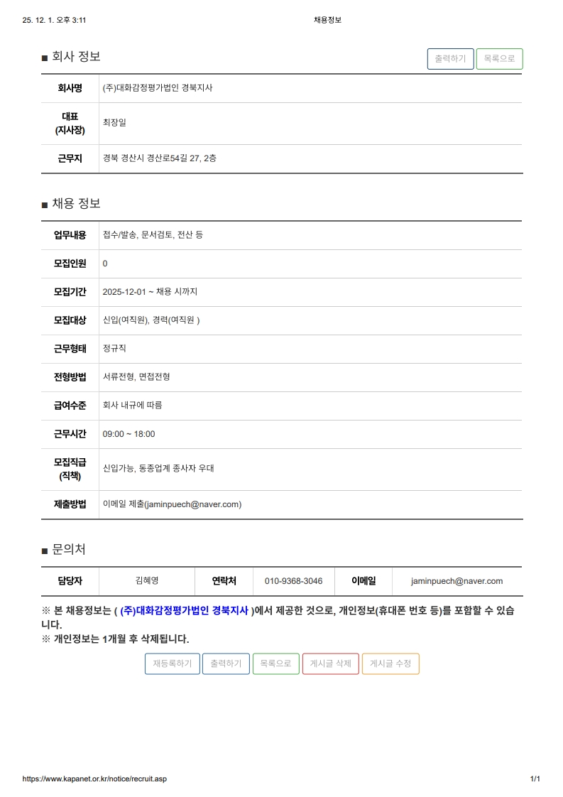 (주)대화감정평가법인 경북지사 평가사 모집