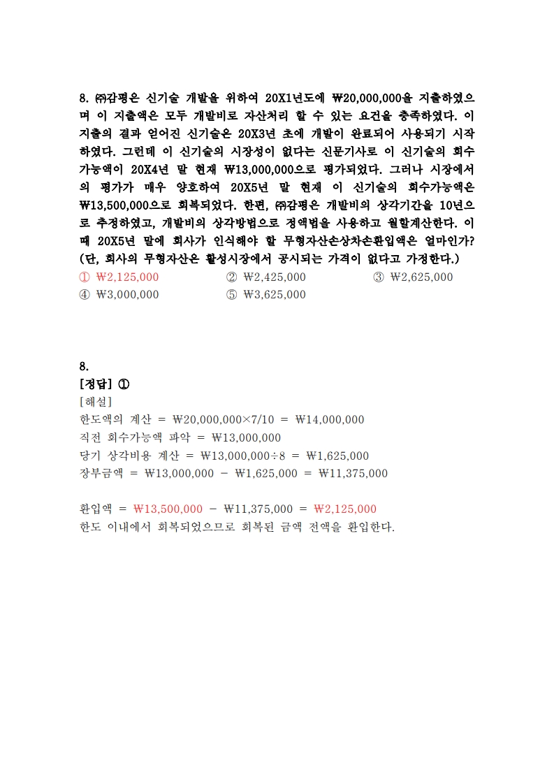 [26년 1차 독종] 3회차 회계학 8번 문제 정오표