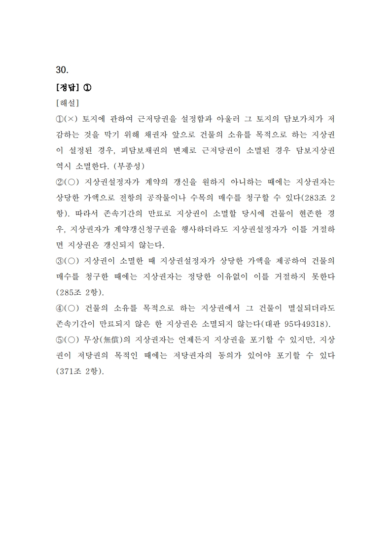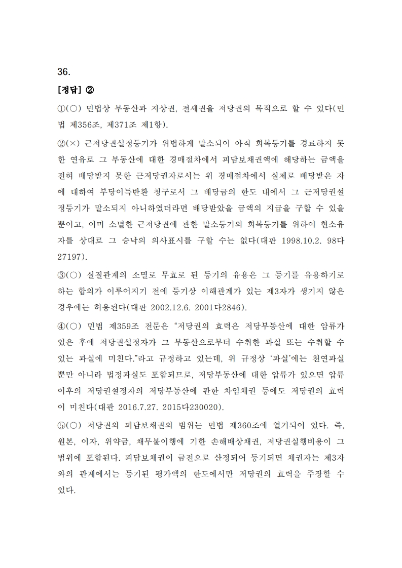 [26년 1차 독종] 6회차 민법 해설지 30번, 34번, 36번 정오표