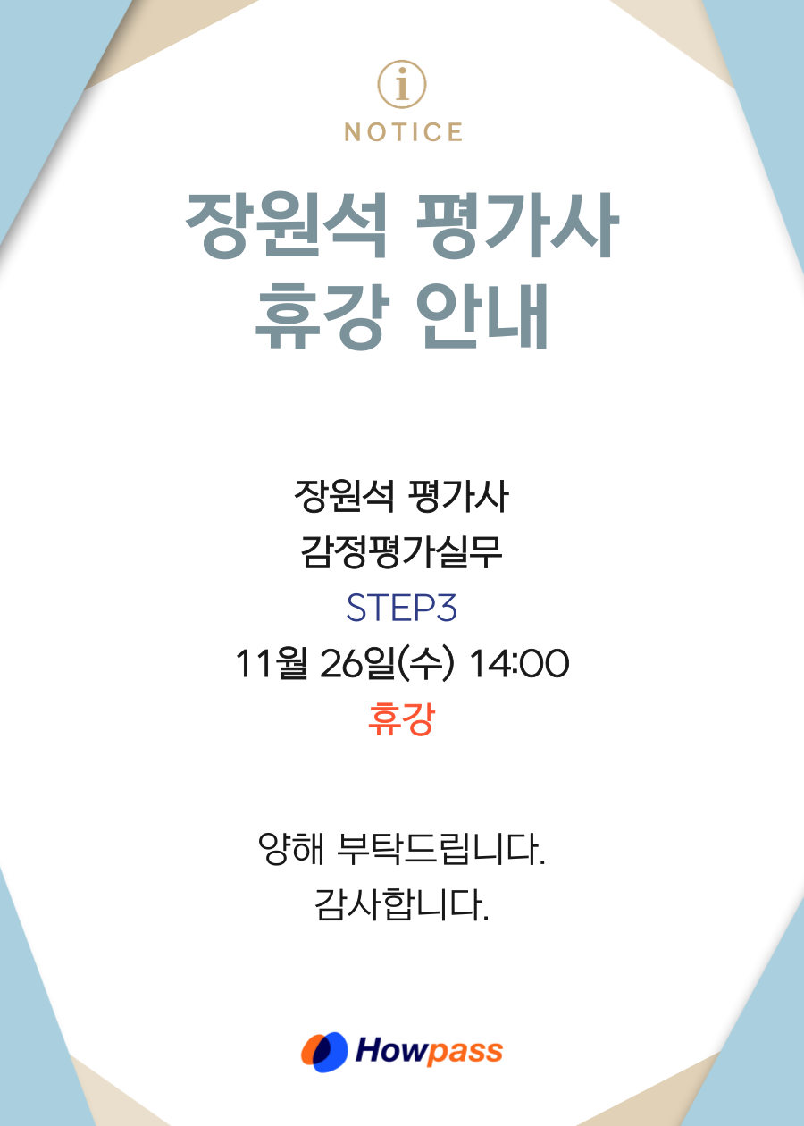 [휴강] 장원석 평가사 감평실무 STPE3 11/26 휴강
