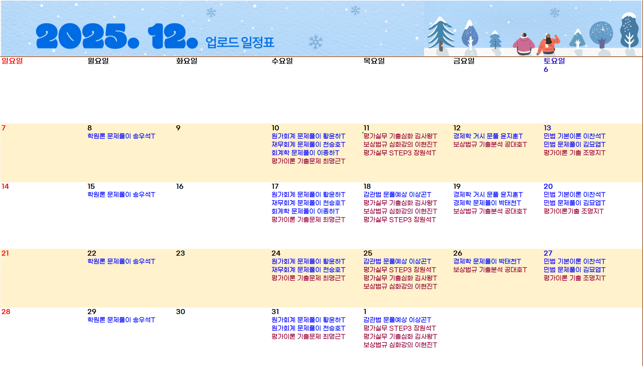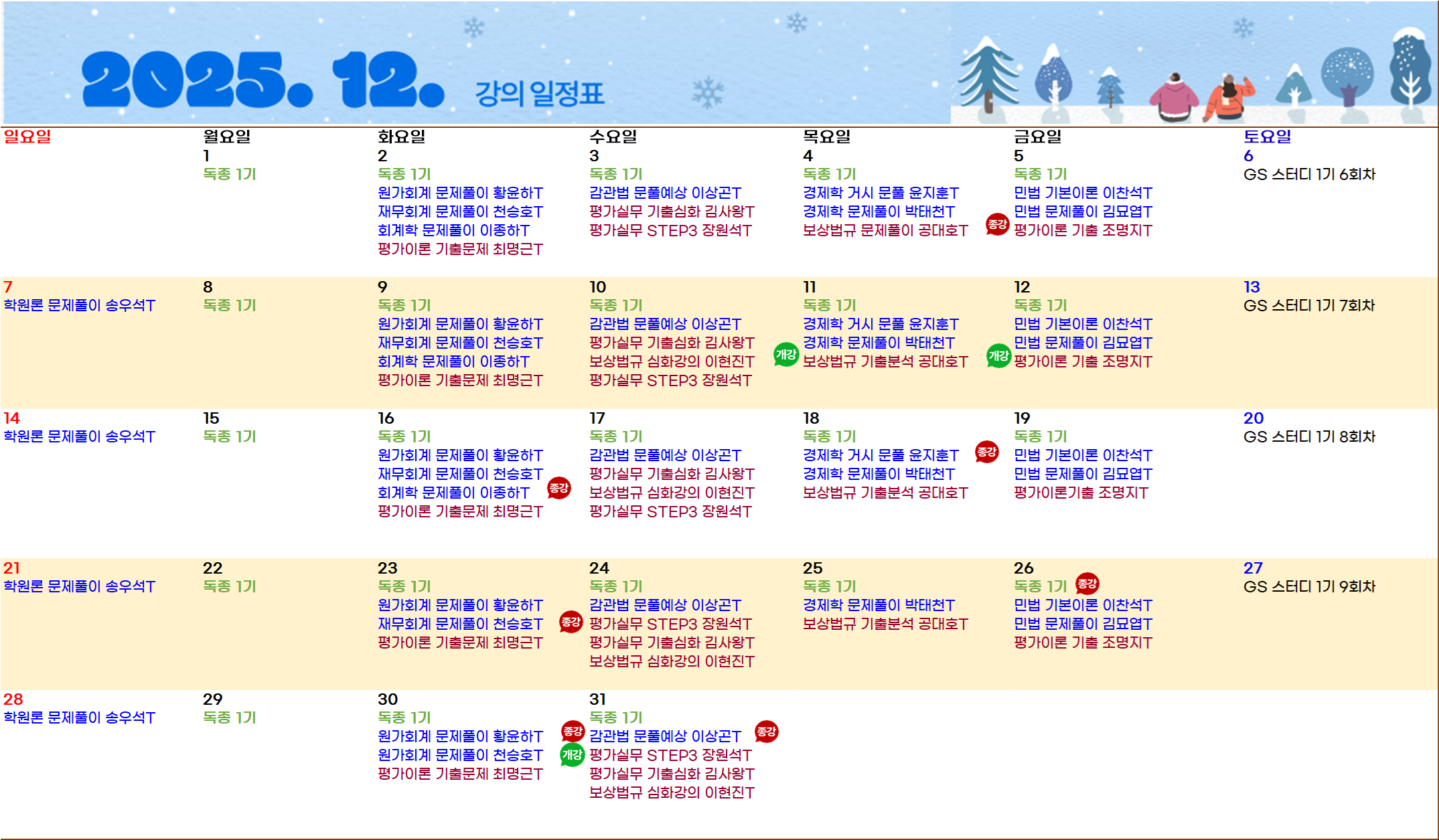 [안내] 12월 강의 & 업로드 일정표 (11.24 기준)