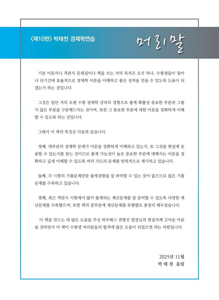 박태천 경제학 연습 객관식 제10판 (25년 11월 출간)