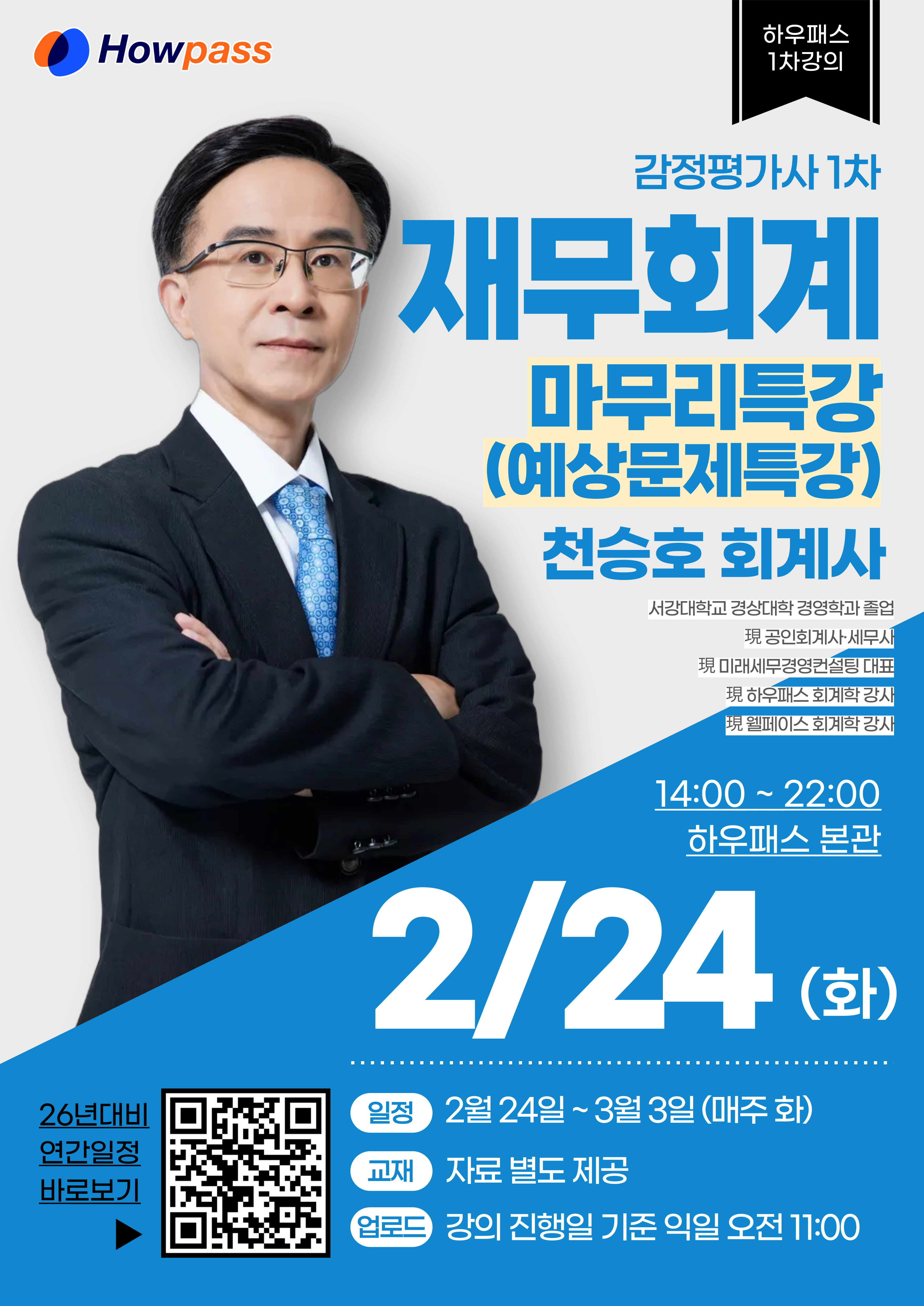 [감평1차] 천승호 회계사 회계학 예상문제특강 2/24 개강