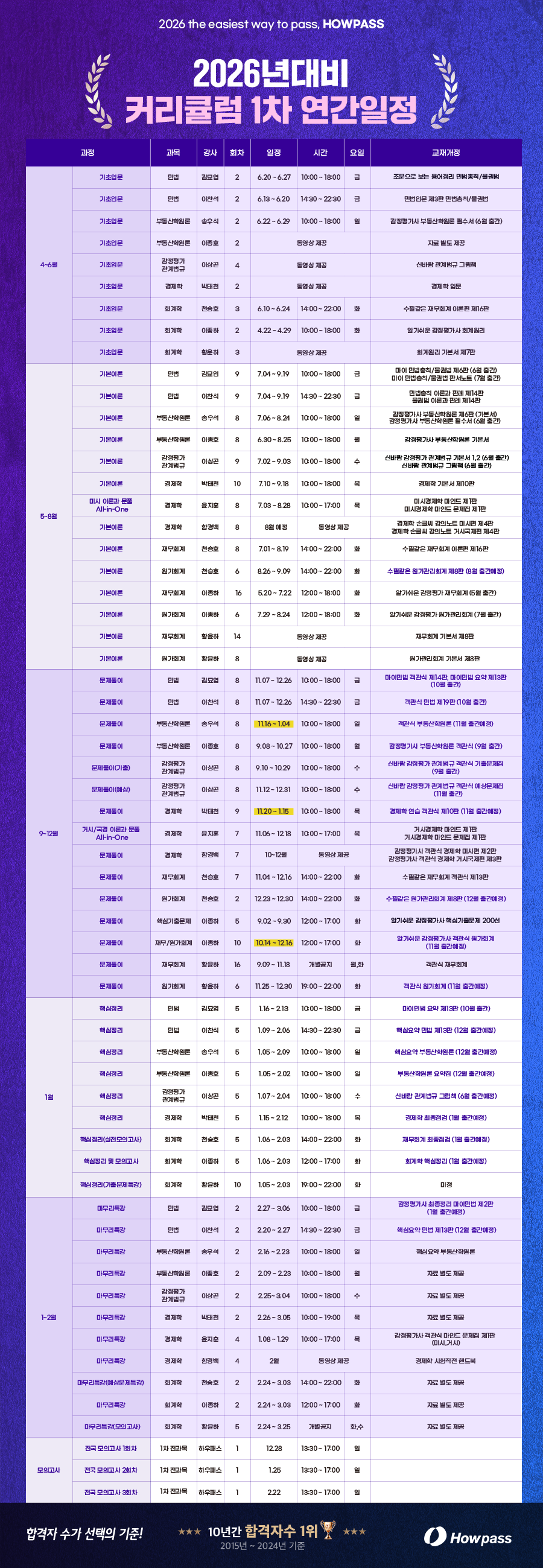 [25.11.11] 2026년대비 감정평가사 연간 일정
