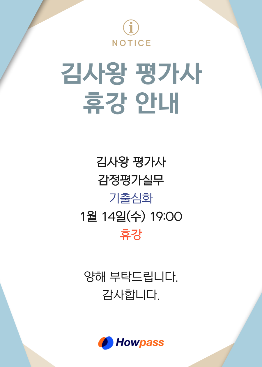 [휴강] 김사왕 평가사 실무 기출심화 1/14 휴강